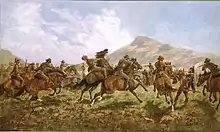 La policía montada atacando a los aborígenes durante la masacre de Slaughterhouse Creek (1838).