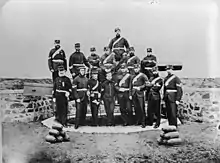 Miembros de artillería de los Voluntarios Hobart Town en agosto de 1869.