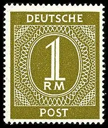 Con la ocupación de Alemania por los poderes aliados, los servicios postales volvieron a funcionar pero fueron administrados bajo diferentes autoridades. Los servicios de ocupación estadounidenses y británicos proporcionaron estampillas AM Post (AM = Allied Military) durante 1945 como el primer paso para restaurar el servicio de correo en sus jurisdicciones. En diciembre de 1945, las autoridades francesas emitieron sellos para la zona française, que luego se complementaron con sellos para Baden, Renania-Palatinado y Wurtemberg. Además, se proporcionaron sellos separados para el Sarre. En la zona soviética, desde 1945, las distintas provincias, Brandeburgo, Mecklemburgo-Pomerania Occidental, Sajonia (Ost Sachsen, West Sachsen, Provinz Sachsen) y Turingia, emitieron diferentes estampillas. En 1946, se emitieron sellos alemanes como Deutsche Post para las zonas ocupadas estadounidense, británica y soviética, pero no para la zona francesa. El uso distintivo del amarillo para indicar el servicio postal fue decretado por el Consejo de Control Aliado en 1946. Con el desarrollo de la Guerra Fría, sin embargo, los intentos de unificar el sistema postal fracasaron. Para 1948, incluso antes del establecimiento de las dos repúblicas alemanas, los sellos comunes habían sido reemplazados por los definitivos para la zona soviética, y diferentes conjuntos de sellos para la bizona.