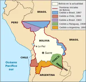 En 1879, Bolivia perdió su décimo departamento denominado departamento del Litoral con Chile, cedió sus pretensiones con el tratado de 1904. La superficie territorial que perdió Bolivia en esa guerra fue de 120 000 km².
