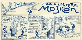 En 1924 surge Mojicón, una adaptación de la tira estadounidense "Smitty" de Walter Berndt, publicada en el "Chicago Tribune-New York News Syndicate", a la que se considera el primer cómic colombiano.[2] Su autor, Adolfo Samper, la publicaría en el periódico independiente Mundo al día hasta 1930. Con el tiempo, este mismo autor publicaría en 1943 otras historietas como Misiá Escopeta y Don Amacise con relativo éxito en el periódico independiente Sábado en la segunda sección. También se editan las revistas infantiles Chanchito (1933), El Fuete (1942), Merlín (1940), Michín (1945) y Pombo (1948).[2]