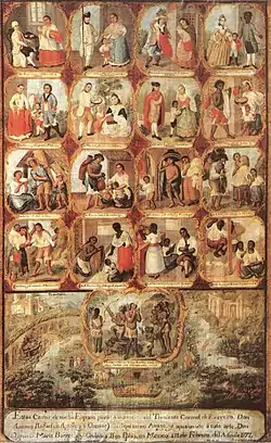 Los debates aproximadamente carrera, clase, y "la casta" sacó en el 1970s con trabajos por un número de becarios.[186][187][188][189][190][191] Los becarios han sido también interesados en cómo la jerarquía racial ha sido descrita visually en el decimoctavo-floración de siglo del género secular de casta pintura. Estas pinturas del espectáculo de punto de vista de la élite estereotipos raciales con el padre de uno corre, madre de otro, y su descendencia labeled en aun así otra categoría.[192][193][194]