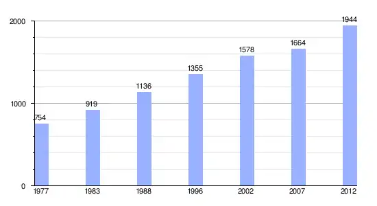 Gráfica de evolución demográfica de Hitiaa entre 1977 y 2012