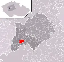 Se encuentra ubicada al oeste de la región y de Praga, en la cuenca hidrográfica del río Berounka —un afluente izquierdo del río Moldava—, y cerca de la frontera con la región de Pilsen.[1]