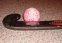 El hockey (raramente adaptado como jóquey)[1] es una familia de deportes originada en Inglaterra a mediados del siglo XVIII en la cual dos equipos compiten para llevar una pelota de un material duro (plástico) o un disco de corcho a la portería contraria para anotar puntos con la ayuda de un bastón largo llamado "palo de hockey" (stick en inglés, bâton en francés).