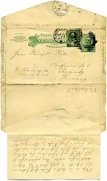 A pesar del intento fallido de popularizar los pliegos de cartas en 1861, el 18 de agosto de 1886 se emitieron pliegos de cartas de dos céntimos con una imagen del presidente Ulysses S. Grant. La última vez que se produjeron fue en 1894, pero las ventas de pliegos de cartas continuaron lentamente hasta 1902. Desde entonces, Estados Unidos no ha producido ninguna,[8] aparte de las hojas de cartas aéreas o aerogramas, que empezaron a estar disponibles en 1947 y que también se dejaron de fabricar en 2006.