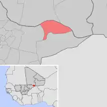 Se encuentra ubicada en el centro-este del país, cerca de la frontera con Burkina Faso y con la región de Tombuctú.