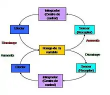 - Efector: es el mecanismo que tiene un efecto sobre la variable y produce la respuesta. La respuesta que se produce está monitorizada de forma continua por el sensor que vuelve a enviar la información al integrador (retroalimentación).