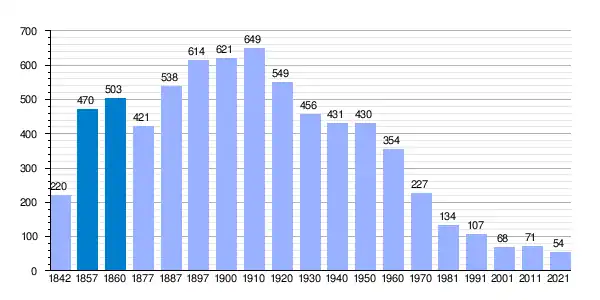 | Gráfica de evolución demográfica de Honrubia de la Cuesta[2] entre 1842 y 2021 |