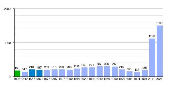 | Gráfica de evolución demográfica de Hontanares de Eresma[11] entre 1828 y 2021 |