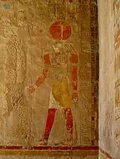 Fue asimilado con el dios Ra bajo el nombre de Ra Hor-Ajti.
