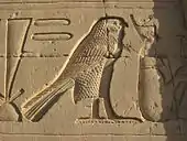 Era representado como un halcón coronado con el disco solar y una cobra en la frente (Uadyet).