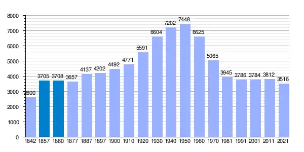 Gráfica de evolución demográfica de Hornachos[6] entre 1842 y 2021