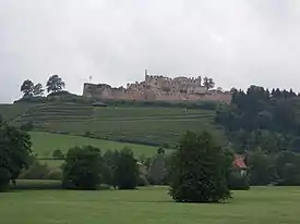 ![]() El castillo Hochburg en el extremo norte del monte | ||