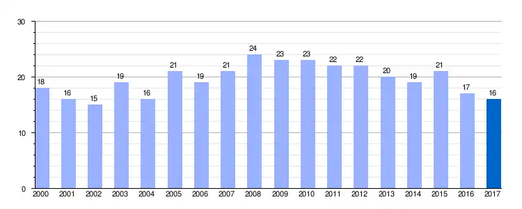 | Gráfica de evolución demográfica de Hornillalastra entre 2000 y 2017 |