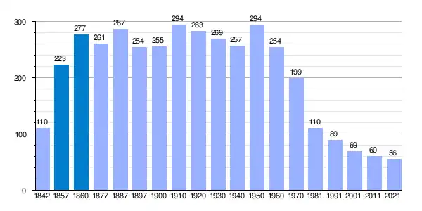 Gráfica de evolución demográfica de Hornillos del Camino[4] entre 1842 y 2021