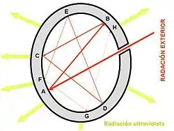 En donde A, B, C, D, E, F, G y H son nodos en la pared interior de la cavidad del "Horno cuerpo negro".