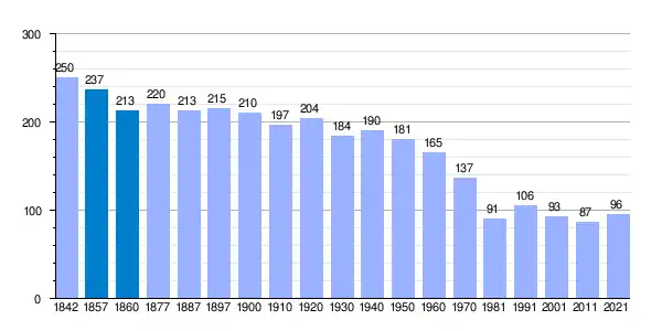 | Gráfica de evolución demográfica de Hornos de Moncalvillo[3] entre 1842 y 2021 |
