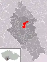 Se encuentra ubicada en el centro-sur de la región, en la zona de la selva de Bohemia, a poca distancia al sur de la ciudad de Praga, de la orilla del río Moldava —el más largo del país, afluente del río Elba— y al norte de la frontera con Austria.[1]