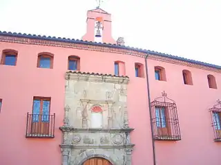 En el orden arquitectónico, el edificio consta de tres plantas y su fachada principal luce una portada de tres cuerpos de estilo renacentista cisneros. La entrada está flanqueada por columnas estriadas con capiteles jónicos y soportan un arquitrabe con la lápida fundacional en el centro, y a los lados el escudo de García Manso. La hornacinas en concha, de piedra roja, está encuadrada por columnillas con capiteles dóricos y unos cisnes como relieves. En la planta principal se abren ventanas enrejadas, y en la segunda, que debió ser añadida en el siglo XVIII, ventanas corridas. El zaguán conserva una inscripción gótica sobre piedra. El patio interior muestra escudos pintados y policromados a lo largo de las cuatro paredes.[2]