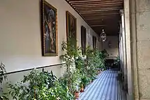 En una de la galería del piso de arriba, que da al patio central, están colgadas hasta 15 pinturas, cuya confección podría ser de los talleres madrileños de los siglos XVII y XVIII. Algunas son Estigmatización de San Francisco y la Inmaculada Niña. Así como un retrato del Duque de Abrantes, fechado en 1874, por Eduardo Balaca y Orejas Canseco (1840-1914), retratista oficial de la corte.