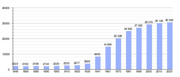 Todos los datos históricos relativos al actual municipio, el siguiente gráfico refleja su evolución demográfica, incluyendo municipios después de efectuada la fusión el 1 de enero de 1977.