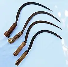 La Hasiya grande se llama Khurpa (o Khoorpa) donde la curva es menos pronunciada, es mucho más pesada y se usa para cortar ramas de árboles con hojas (para alimentación animal), picar carne, etc. El famoso Khukuri nepalí también es un tipo de hoz donde la curva se vuelve menos visible.