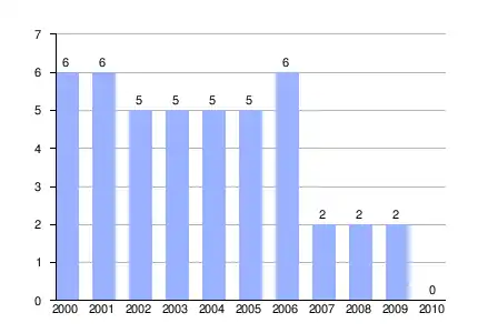 | Gráfica de evolución demográfica de Hoz de Arriba entre 2000 y 2010 |
