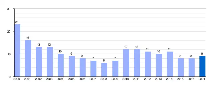 | Gráfica de evolución demográfica de Huéspeda entre 2000 y 2021 |