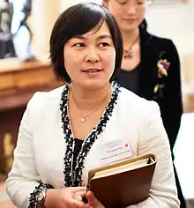 - «zh:外交部新发言人出生干部家庭 大学四年没谈恋爱». Tencent (en chino). Archivado desde el original el 13 de mayo de 2014. Consultado el 19 de noviembre de 2012.