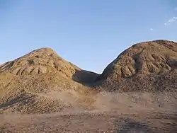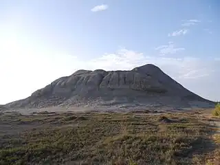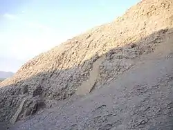La pirámide principal es la característica más destacable del yacimiento. En su momento fue una pirámide escalonada cuya base medía 90 metros de largo y 90 de ancho. Su altura alcanza poco más de 30 metros. Aparte del socavón, a sus pies actualmente se observa un enorme montículo de escombros procedentes de los saqueos. En las paredes de la pirámide se encontraron pintados simples, como el uso del blanco para las estructuras de la cima, y bajorrelieves polícromos, los cuales suelen representar motivos geométricos. También se descubrieron varias escalinatas, patios, oquedades para postes, corredores, una máscara funeraria y cabezas decorativas de mazas que eran usadas a manera de almenas.