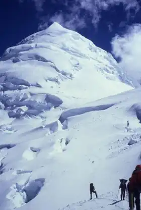 Perú. El 3 de agosto de 1953,[22] la expedición peruana conformada por Félix Mautino, los hermanos Guido, Pedro y Apolonio Yanac y Macario Ángeles, lograron la cima sur.[23] Al año siguiente, los mismos miembros de aquella expedición consiguieron la cima del macizo argentino Aconcagua, techo de América.