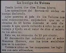 - «Huelga Ferroviaria de Tolosa 1896.». Archivado desde el original el 5 de marzo de 2016. Consultado el 12 de mayo de 2015.