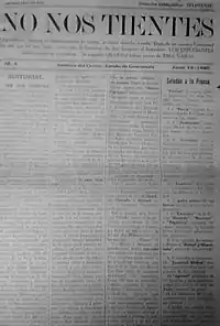 El periódico satírico de los estudiantes de la Universidad de San Carlos, que se publica una vez al año el día Viernes de Dolores. En él se incluyen artículos de opinión sobre los recientes eventos nacionales, y dura crítica al gobierno de turno. El viernes de dolores, 1 de abril de 1898, por la inspiración de los estudiantes de la Universidad Nacional Guillermo Salazar, Carlos Martínez, Luis Obregón, Francisco Asturias y Luis Gaitán, el Periódico «No Nos Tientes», en cuyo Editorial titulado «Lo que nos proponemos», quedó plasmado el ideario de la Huelga de Dolores, dice aquel Editorial: «Tentados estamos a desembuchar el pico, castigando con este formidable látigo que llaman opinión pública a muchos dos caras que merecen verdadera tunda, pero como Natura Non Facit Saltus, nos contentamos hoy con dar la sierpe que se merecen algunos, para seguir con los demás cuando las circunstancias lo permitan.» En el No Nos Tientes de 1900 se publicó la primera canción huelguera, «Canción Emética» (porque provoca el vómito), construida principalmente con esdrújulas y que utilizaba la música de la opereta «El murciélago» de Johann Strauss.[3]