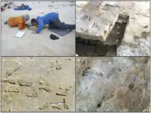 Las huellas fósiles de White Sands son un conjunto de huellas humanas fosilizadas descubiertas en 2009 en el Parque Nacional White Sands en el estado de Nuevo México, Estados Unidos. En 2021 fueron datadas mediante carbono-14, utilizando muestras de semillas, estas arrojaron fechas entre 21.000 y 23.000 años antes del presente, lo que las convierte potencialmente en las evidencias más antiguas de la existencia de humanos en América.[1][2] Las 61 huellas están ubicadas en la orilla de lo que fue un lago durante la era del hielo, en la cuenca de Tularosa.[3]
