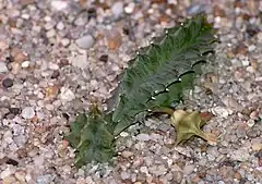 - Esta obra contiene una traducción derivada de «Huernia zebrina» de Wikipedia en alemán, publicada por sus editores bajo la Licencia de documentación libre de GNU y la Licencia Creative Commons Atribución-CompartirIgual 4.0 Internacional.