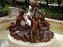 Fuente con tres querubines y el inscripción "Fonderies d´Art du Val d´Osne 58, rue Volataire. Paris"