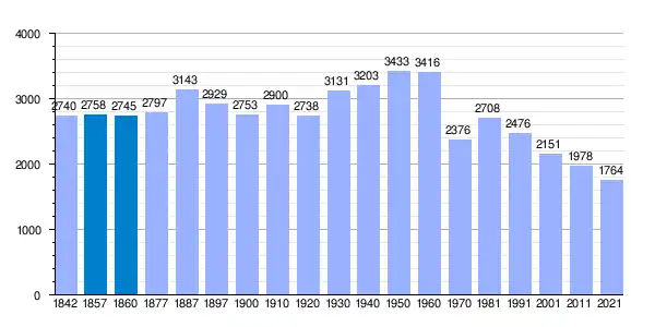| Gráfica de evolución demográfica de Huete[4] entre 1842 y 2021 |