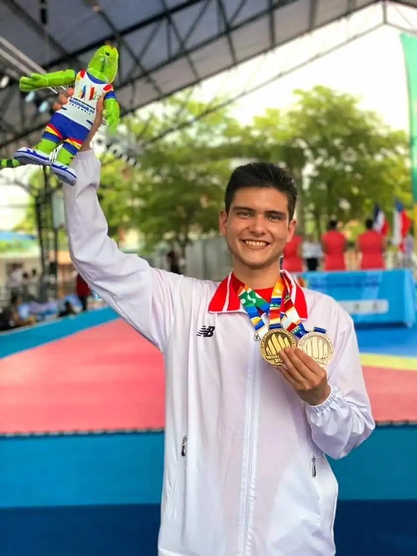 ![]() Hugo tras haber obtenido medallas de oro y bronce en los XIX Juegos Bolivarianos (Valledupar 2022). | ||||||||||||||||||||||||||||||||||
