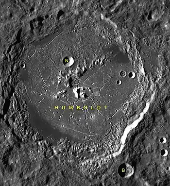 ![]() Entorno de Humboldt. Fotografía de la misión Lunar Reconnaissance Orbiter |