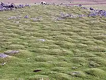 Los hummocks en forma de crestas bajas del musgo de la turba seca normalmente forman parte de la estructura de ciertos tipos de turba elevada, como en los altiplanos de turba, del tipo palsa, con núcleos de permafrost que se encuentran por encima del círculo polar. Suelen alternar con depresiones húmedas poco profundas.