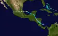 Gert se formó como una depresión tropical en el extremo suroeste del mar Caribe el 14 de septiembre, alrededor de 170 km (106 mi) al norte de Panamá. La depresión se desplazó al oeste-noroeste y pasó a ser una tormenta tropical el día 15, justo antes de tocar tierra en Nicaragua. Gert se debilitó a una depresión tropical, viajó a través de Nicaragua y Honduras, y surgió brevemente al mar donde recuperó la fuerza de tormenta tropical. Llegó a Belice el 18 de septiembre, y cruzó la península de Yucatán, surgió en la bahía de Campeche ese mismo día. Cruzó aguas abiertas por primera vez desde que se formó, Gert se fortaleció rápidamente, alcanzando categoría 2 justo antes de tocar tierra cerca de Tuxpan el 20 de septiembre. Gert se disipó el día 21, después de haber causado más de 166 millones de dólares en daños (1993 USD) y matando a 76 personas.