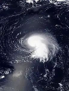 ![]() El Huracán Henri se acerca a la intensidad máxima acercándose a Nueva Inglaterra el 21 de agosto de 2021 | ||