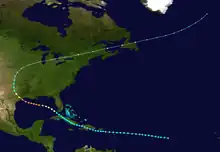 | Áreas afectadas | Puerto Rico, República Dominicana, Haití, Cuba, sur de la Florida, Misisipi, Luisiana, Texas (en especial el área de Galveston), gran parte de Estados Unidos, región de los Grandes Lagos, costa atlántica de Canadá | |