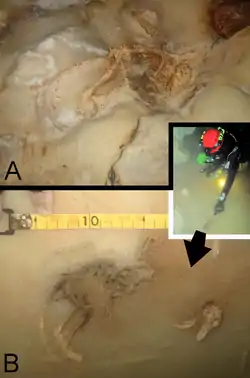 ![]() Esqueletos hallados en la Cova des Pas de Vallgornera | ||