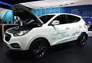 El Hyundai ix35 FCEV o Tucson FCEV[1] es un vehículo eléctrico de celdas de hidrógeno creado por Hyundai. Han existido varias versiones, la primera generación fue introducida en el 2001 con el Hyundai Santa Fe FCEV, y tenía un alcance de 160 kilómetros (100 mi), con una velocidad máxima de 126 km/h (78 mph). La segunda generación de Tucson FCEV fue introducida en el 2005, ésta usaba una placa bipolar de grafito y tenía un alcance de 300 kilómetros (190 mi) y una velocidad máxima de 150 km/h (93 mph). La tercera generación está basada en el Hyundai ix35 (2009), su producción fue semiautomática y el auto usaba una placa bipolar de metal.[2] La cuarta y última generación es la del Tucson ix35 FCEV modelo 2012. Este tiene un motor eléctrico más poderoso, de 134 caballos de fuerza (100 kW), y un alcance de 594 kilómetros (369 mi) aproximadamente. Esta mejora es en parte gracias a su espacio más grande para guardar hidrógeno comprimido en tanques de hidrógeno, la presión más alta de almacenamiento en los tanques, y una tecnología de celdas de hidrógeno más avanzada. El tipo de celda que utiliza este modelo es la de membrana de intercambio de protones (PEMFC por sus siglas en inglés). El diseño del vehículo se ha enfocado en maximizar el espacio para los pasajeros y los componentes del motor al mismo tiempo.