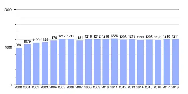 | Gráfica de evolución demográfica de Iñás entre 2000 y 2018 |