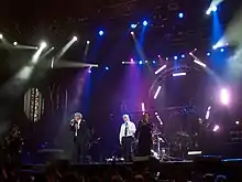 ![]() Iñaki Uranga (en el centro) durante un concierto con El Consorcio en 2009. | ||