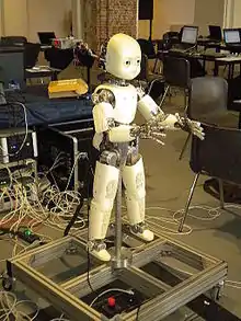 iCub es un robot humanoide de código abierto de un metro de altura para la investigación de la cognición social e inteligencia artificial.