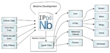 El cuaderno Notebook de IPython está basado en la web y es interactivo. Un notebook en IPython es un documento JSON que contiene una lista ordenada de entradas / salidas las cuales pueden tener código, texto, matemáticas, dibujos y rich media. Los notebooks de IPython pueden ser convertidos a otros formatos de archivos como HTML, presentaciones de diapositivas, LaTeX, PDF, Python, etc).